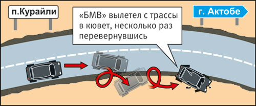 Авария произошла утром 5 ноября на дороге Актобе – Мартук. Автомобиль «БМВ-520» ехал из Жайсана в Актобе. За рулем был 18-летний актюбинец, в салоне – 5 пассажиров.